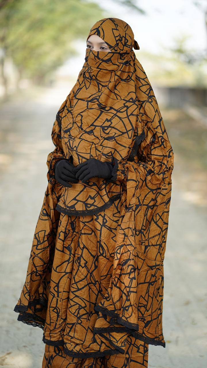 Size Details: Khimar Length 60″, Khimar Gher 180″, Palazzo Length 40″.